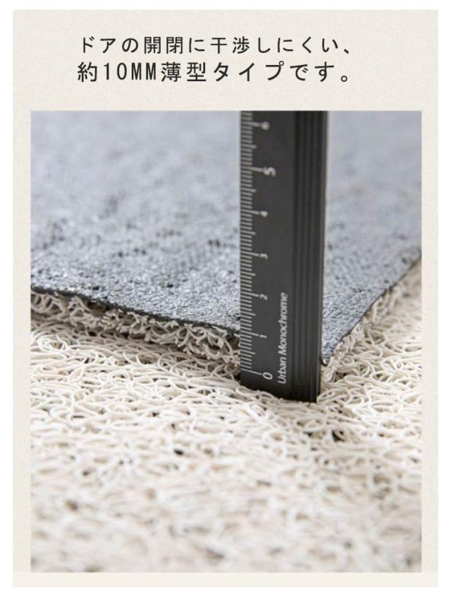 | 泥落としに便利な玄関マットです。 ループ状の表面が靴裏の砂や泥、ホコリをキャッチして、室内への汚れの侵入を低減させます。 裏面は滑り止めのゴムになっています。 可愛らしいデザインかつお洒落なエントランスを引き立てます。 ドアの開閉に干渉しにくい、約10mm薄型タイプです。 気になる汚れはホースの水をジャブジャブかけてOK!裏返して置いておけばすぐに乾きます。 | |