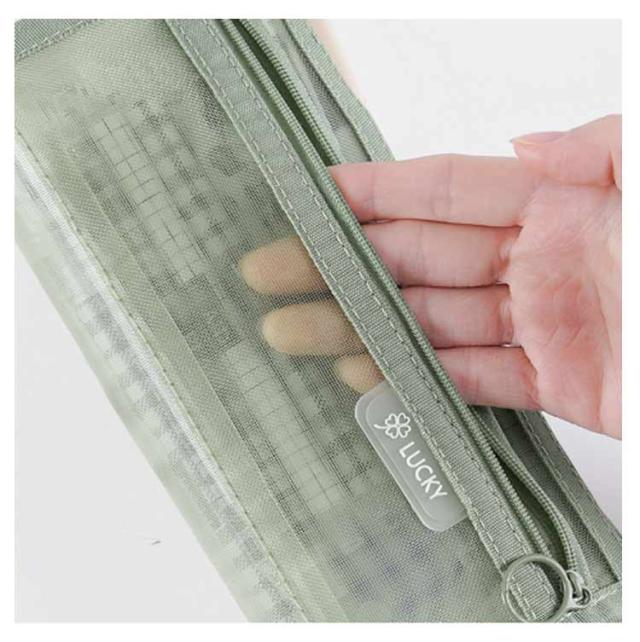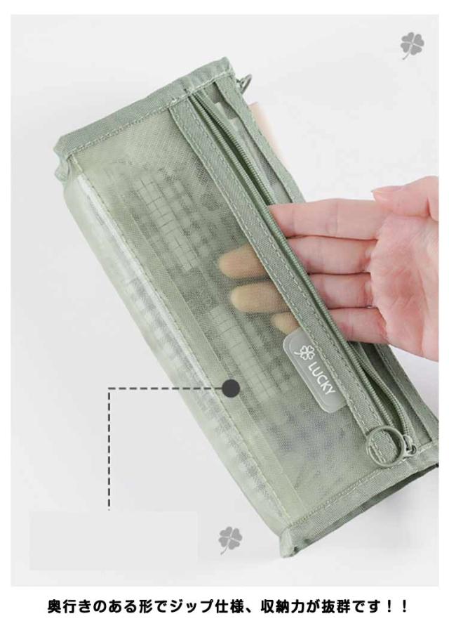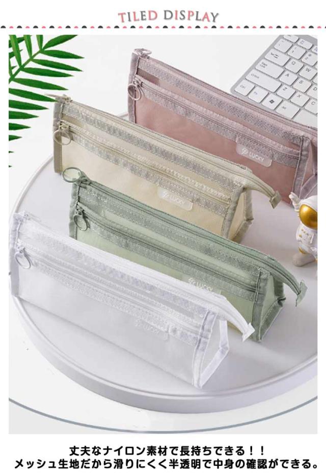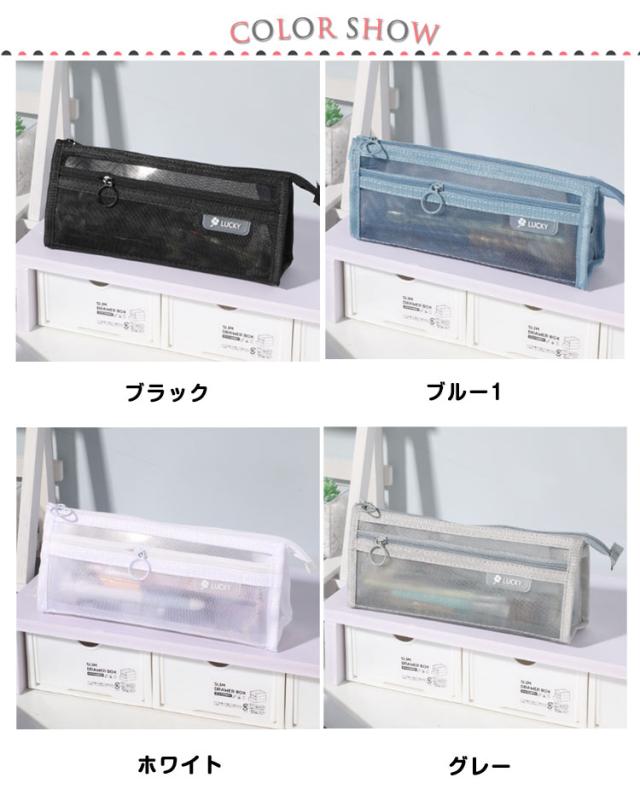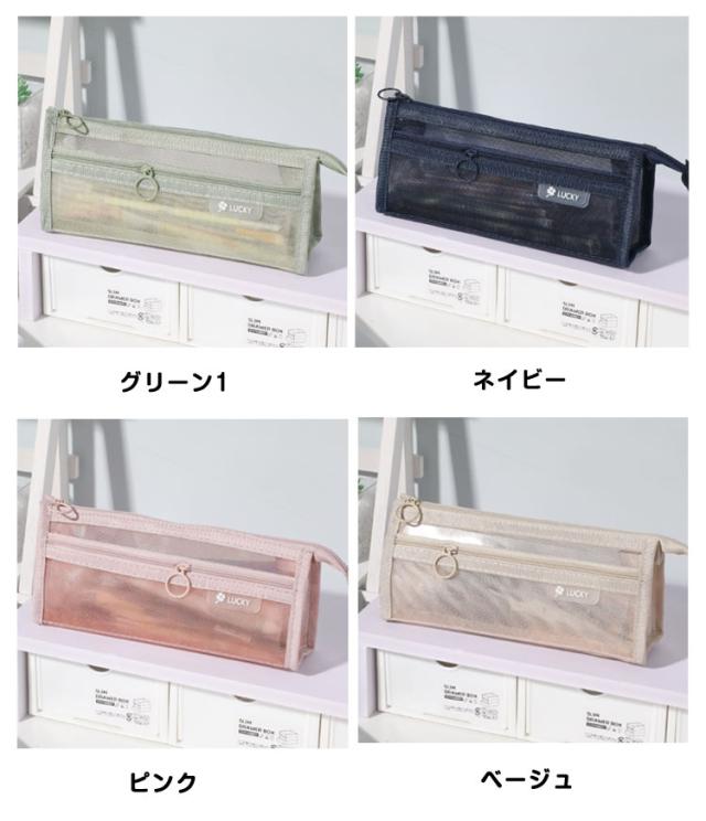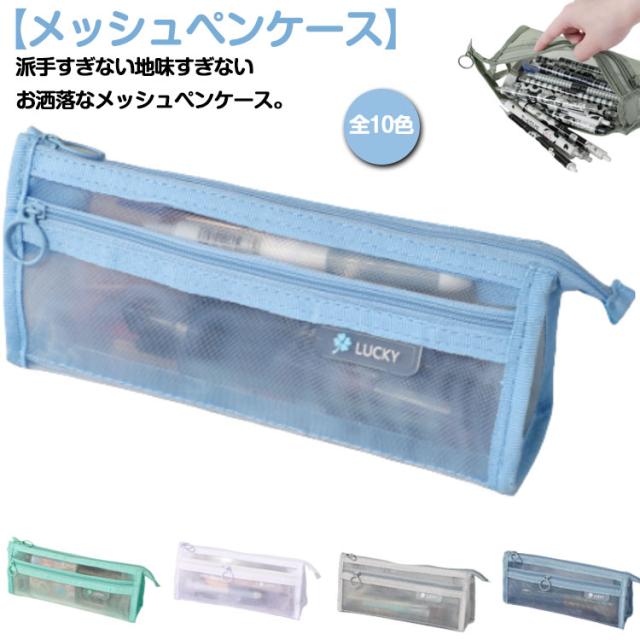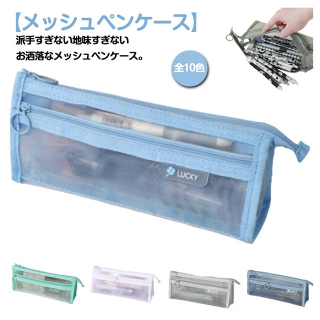 | 【メッシュペンケース】【全10色】 派手すぎない地味すぎないお洒落なメッシュペンケース。 丈夫なナイロン素材で長持ちできる!! メッシュ生地だから滑りにくく半透明で中身の確認ができる。 友達とお揃いも素敵な透明ペンケース。受験用にも大活躍! 掴みやすい引手付きで、ファスナーの開け閉めのスームズ♪ 奥行きのある形でジップ仕様、収納力が抜群です!! 透ける筆箱なのでどこに何が入っているのか探しやすいです。 しんぷるでオシャレなデザイン構造のぺんけーすなので、男の子や女の子、小学生の子供も文房具の収納に使えます。 | |