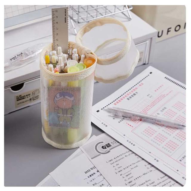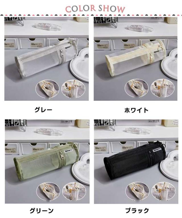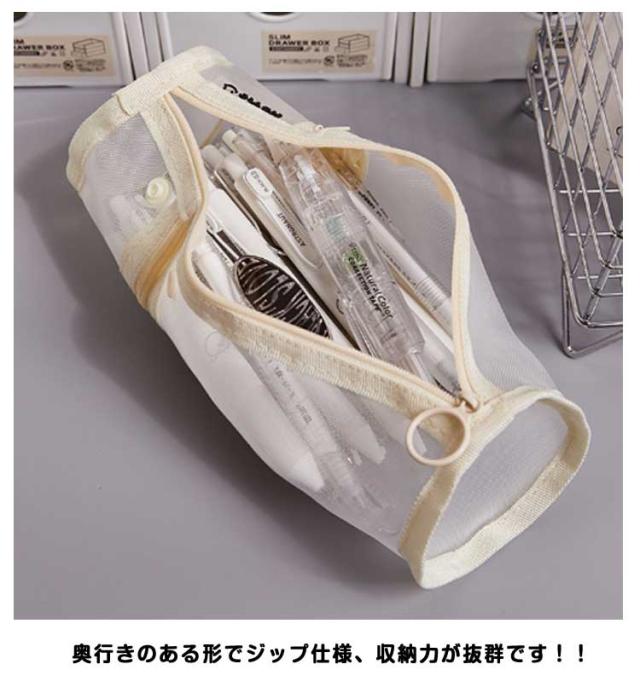| 【メッシュペンケース】【自立・クリア】 派手すぎない地味すぎないお洒落なメッシュペンケース。 丈夫なナイロン素材で長持ちできる!! メッシュ生地だから滑りにくく半透明で中身の確認ができる。 友達とお揃いも素敵な透明ペンケース。受験用にも大活躍! 掴みやすい引手付きで、ファスナーの開け閉めのスームズ♪ 奥行きのある形でジップ仕様、収納力が抜群です!! 透ける筆箱なのでどこに何が入っているのか探しやすいです。 しんぷるでオシャレなデザイン構造のぺんけーすなので、男の子や女の子、小学生の子供も文房具の収納に使えます。 | |
