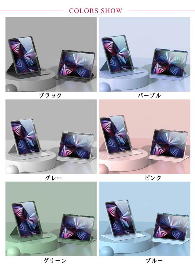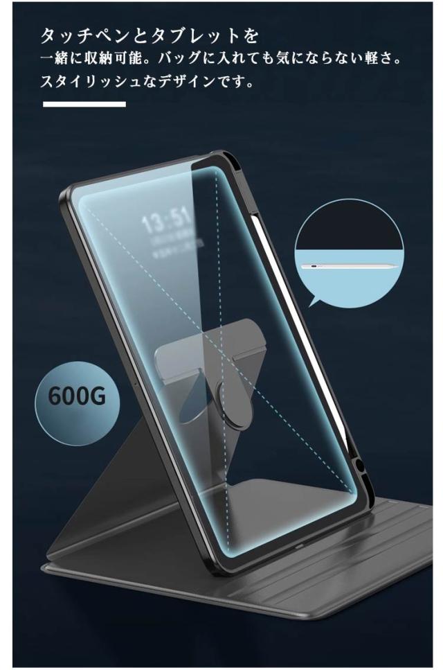 | 横置き・縦置き・360°回転可能なペン収納付きのipadケース。【13インチ】 360°回転段階調整可能なスタンドタイプ横置き・縦置き3つのスタイルをサポート。 ケースの内側には、画面をスタンドするための2箇所の凹みがあり、角度調整が可能です。縦置き、横置きどちらにも対応しており、状況に応じて最適な角度でiPadを操作できます。 より効果的な衝?吸收加工により、落下衝撃に耐え、タブレットを守ります。 背面にはアクリル素材を使用しており、縁にはPU素材を採用しているので、落下時の衝撃からiPadをしっかりと保護します。 タッチペンとタブレットを一緒に収納可能。 バッグに入れても気にならない軽さ。スタイリッシュなデザインです。 カメラをフルカバーし、レンズより0.3mm高い保護フィルムがカメラレンズをしっかり守ります。フィルムを貼っていなくても、カメラレンズを確実に保護。カメラの機能には一切影響ありません。 バッグに入れても気にならない軽さ。スタイリッシュなデザインをそのまま保ちます。 | |
