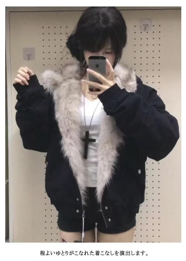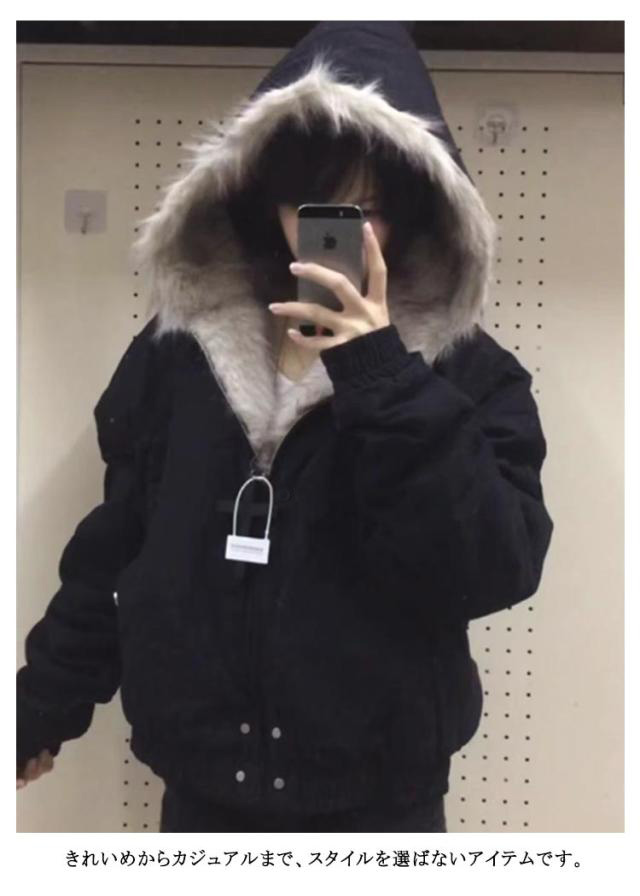 裏起毛 フェイクファー レデイース 裏ボア メンズ ファー ジャケット ファージャケット 厚手 秋冬 アウター 裏ファー 中綿ジャケット フード付き ショート丈 モコモコ ふわふわ ファー付き コート ストリート ルーズ y2k 韓国風