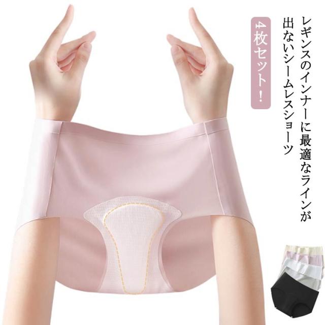 クロッチパット付き シームレス ショーツ セット 吸湿性 4枚セット シンプル 通気性 下着 Yライン シームレスショーツ 4枚セット ストレスフリー レディース カバー 通気性 パンツ 伸縮性 響かない 快適 薄型 女性用 ノーマル 無地 スタンダード