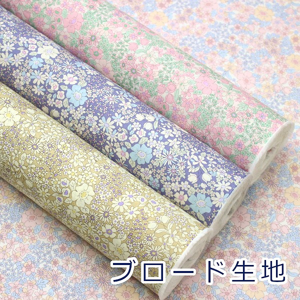 パステルカラーがきれいな小花柄のブロード生地。