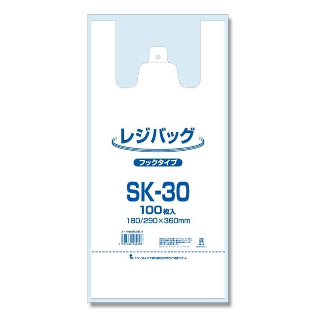 シモジマ レジ袋 レジバッグ フックタイプ SK-30 100枚 幅180×高360mm(マチ110mm) 006903501 【北海道・沖縄・離島配送不可】