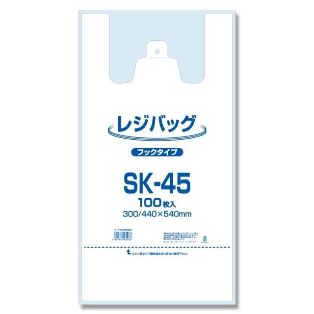 シモジマ レジ袋 レジバッグ フックタイプ SK-45 100枚 幅300×高540mm(マチ140mm) 006903504 【北海道・沖縄・離島配送不可】