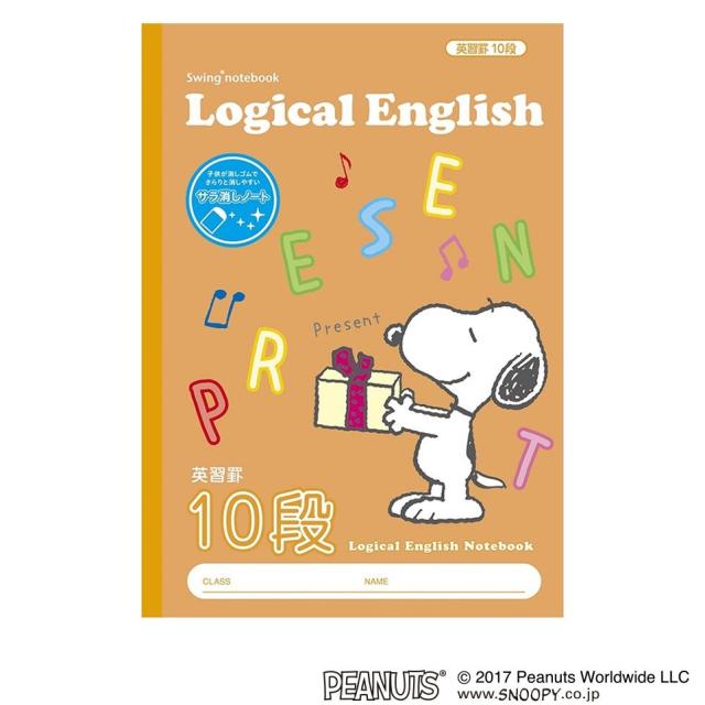ロジカル英習ノートのスヌーピーの柄が登場。消しゴムでサラりと消せる本文用紙を使用!