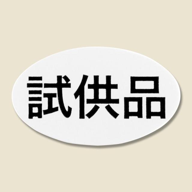 試供品であることを表示するシールです。小ぶりの楕円型で、白地に黒文字のシンプルなデザイン。
