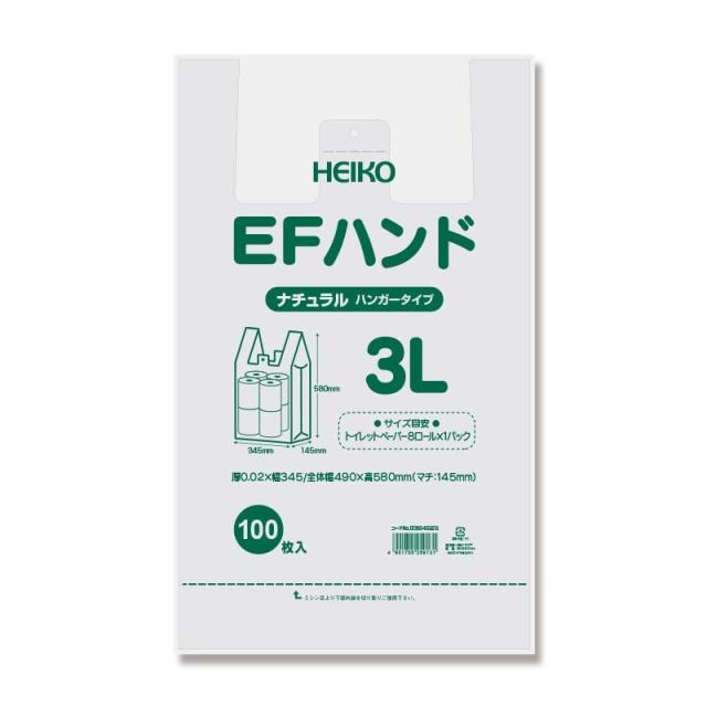 (まとめ買い)シモジマ HEIKO レジ袋 EFハンド ナチュラル(半透明) ハンガータイプ 3L 100枚 幅345×高580mm(マチ145mm) 006645926 〔×3〕 【北海道・沖縄・離島配送不可】