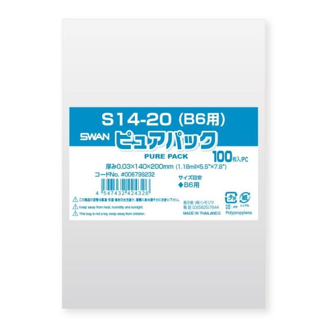 (まとめ買い)シモジマ SWAN OPP袋 ピュアパック S14-20(B6用) (テープなし) 100枚 幅140×高200mm 006798232 〔×5〕 【北海道・沖縄・離島配送不可】