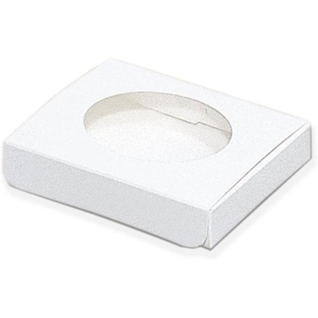中身が見える窓付きボックス!窓のある面がふたとして全開しますので、中身をきれいに入れることができます。(耐油・耐水加工は施されておりませんので、食品を直接入れることは避けてください。) 窓枠サイズ:68×52mm 10枚入り