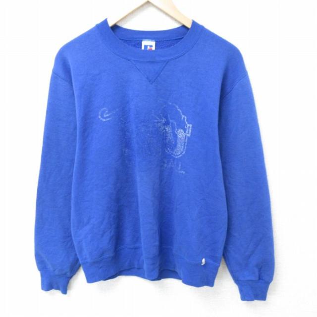 【商品名】 M★古着 ラッセル 長袖 スウェット メンズ 90年代 90s バレーボール クルーネック USA製 青【spe】