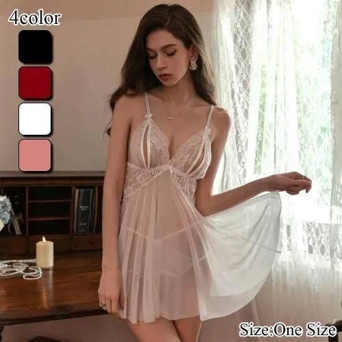 ベビードール ベビド セクシー ランジェリー 下着 ネグリジェ カット スリット チュール チラリ ラグジュアリー 華やか 胸元 大胆 透け感 レース 切り替え バックスタイル ブラック ピンク レッド ホワイト Mサイズ