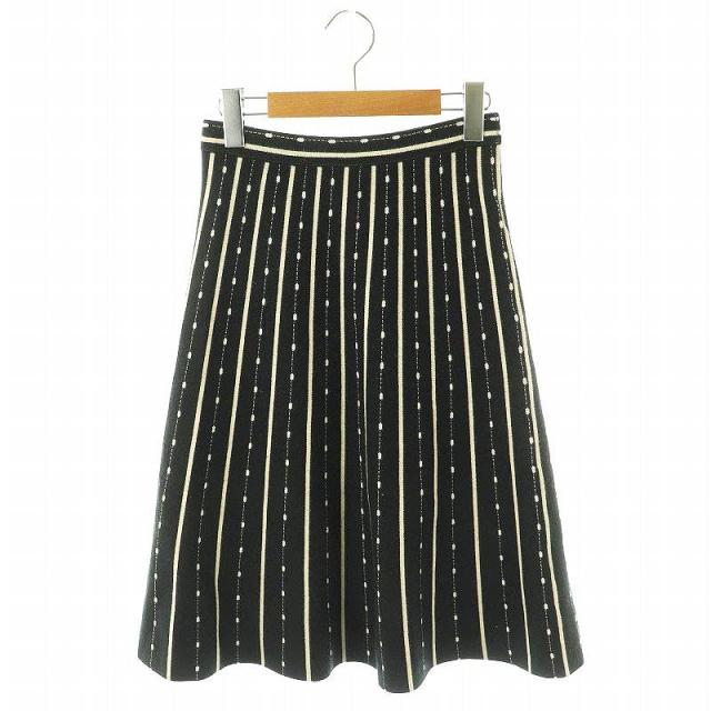 【中古】ソブ sov. ダブスタ ストライプ ニット フレアスカート ひざ丈 36 黒 ブラック 白 ホワイト