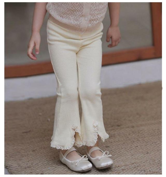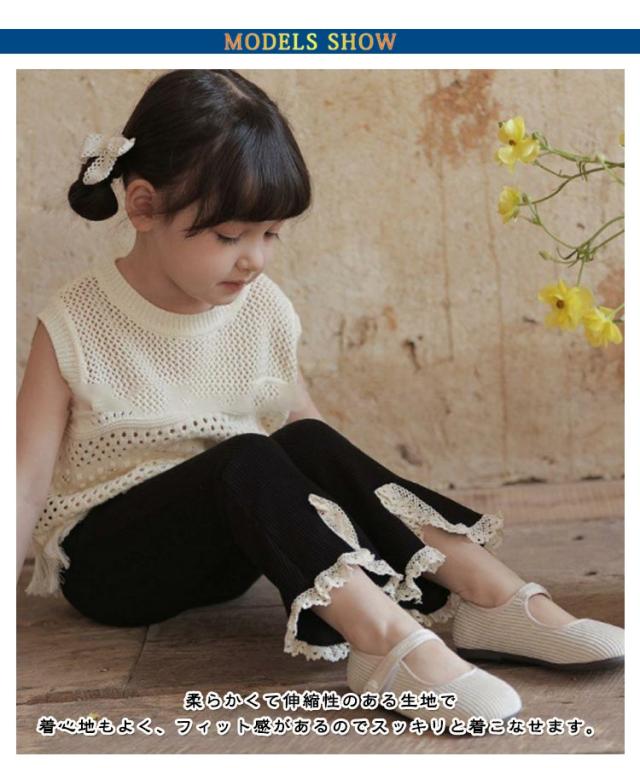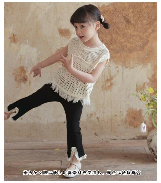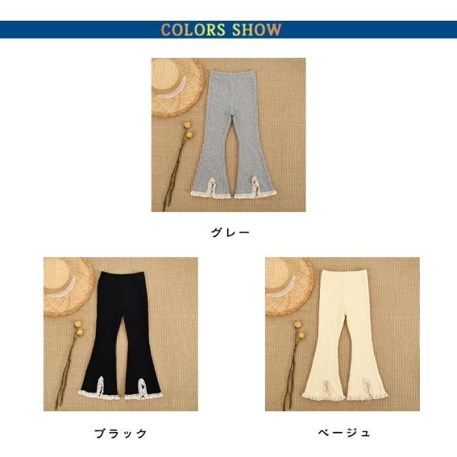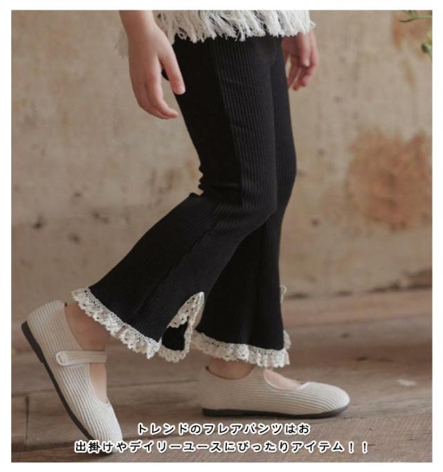 リブ フレアパンツ キッズ 秋 保育園 レギンス 子供服 子供服 夏 女の子 長ズボン レース 女児 伸縮性 かわいい ウエストゴム ストレッチ パンツ 幼稚園 お着替え 保育園 幼稚園