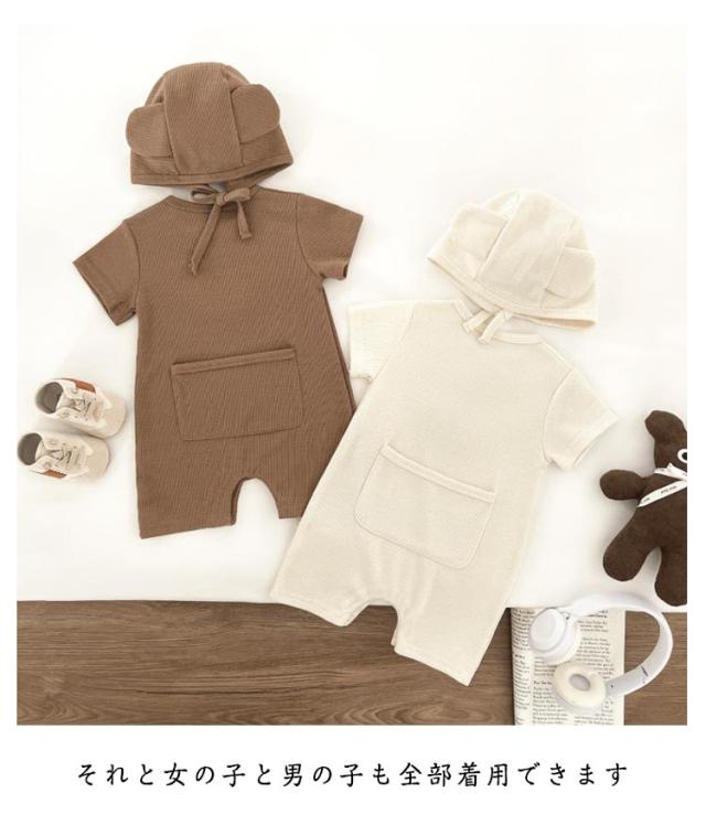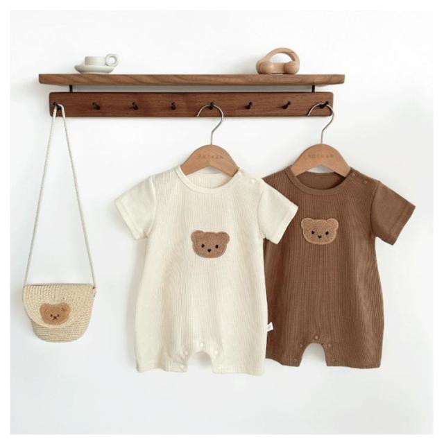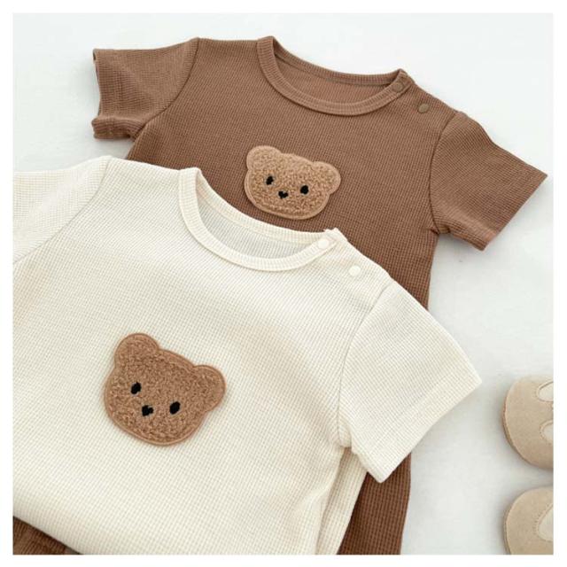 ワッフル 可愛い ベビー 半袖 クマ 男の子 女の子 ロンパース かわいい 赤ちゃん服 ワッフル 春 おしゃれ 夏 ベビー服 秋 コットン 出産祝い 通園 普段着 肌着 ベビーロンパース インスタ映え 韓国子供服 子供服
