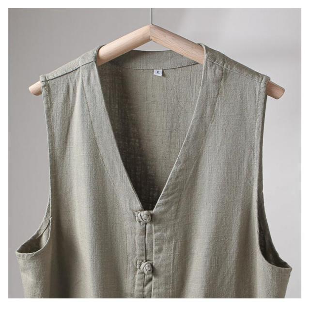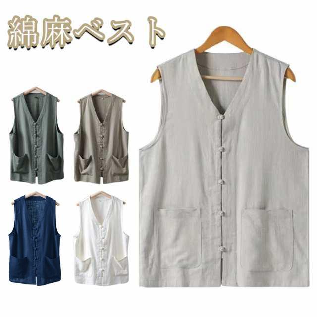 メンズ 綿麻ベスト リネンベスト 個性的 春服 涼しい トップス チャイナ風 サマージャケット 夏 リネンベスト ノースリーブ 前開き 細身 無地 薄手 カジュアルベスト 夏服 綿麻 30代 40代 紳士 ビジネス 父の日 リゾート チャイナボタン 60代 涼しい 散歩 軽量