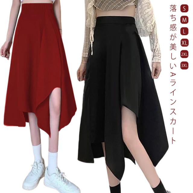 フレアスカート オフィス ミモレ丈 aライン フレアスカート スカート aラインスカート ひざ丈 春 夏 黒 無地 膝丈 ヘムスカート おしゃれ ゆったり マキシ丈 透け感 薄手 涼しい ボトムス 衣装