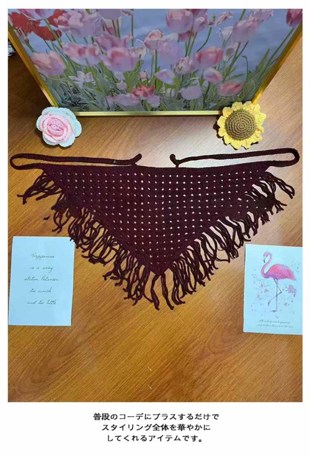 付け裾 ダンス ウエストマーク 透かし編み スカーフ 三角 かぎ編み 肩掛け ウエストベルト ヒップスカーフ レイヤード アクセサリー 森ガール 付け裾 フリンジ 韓国 腰巻き 腰巻 付け裾 着重ね風 ファッション小物
