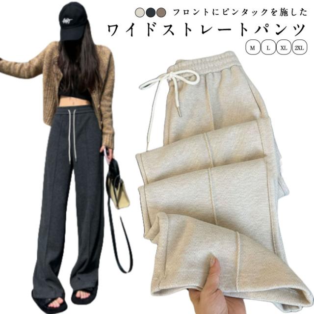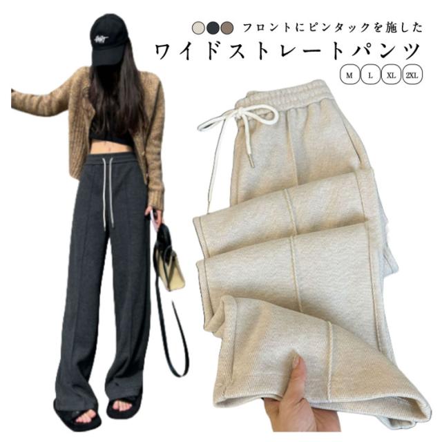 パンツ 秋 ワンマイルウェア ワイド パンツ 春 ワイドパンツ 春物 スウェット ロング 春服 レディース ズボン ルームウェア 大きいサイズ おしゃれ ゆったり スラックス ピンタック ストレートパンツ カジュアル ホワイト ブラック