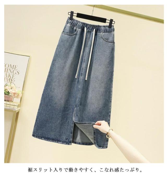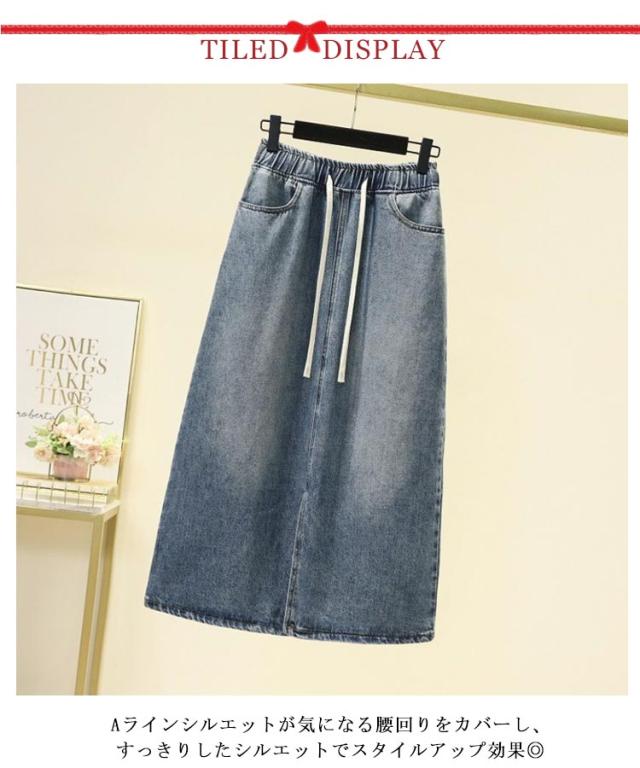 | ドローストリング付きデニムスカート。 Aラインシルエットが気になる腰回りをカバーし、すっきりしたシルエットでスタイルアップ効果◎ ウエストゴム&調節可能なドローストリング付きで楽ちん&フィット感抜群! 裾スリット入りで動きやすく、こなれ感たっぷり。 通気性の良い ライトデニム生地 を採用し、暑い季節でもさらっと快適♪ どんなトップスとも相性◎ デイリーコーデからお出かけコーデまで幅広く活躍! | |
