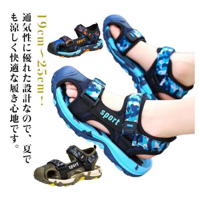 | 19cm〜25cm!通気性に優れた設計なので、夏でも涼しく快適な履き心地です。 衝突防止設計!つま先部分には保護設計を採用、足をしっかりと保護、ケガを防ぐ! 通気性、耐久性が優れている高級メッシュ素材を使用しています。 靴の中の空気が流通性良く、対流させ、足はさっぱり。 熱気をすぐサンダルの外に発散でき、蒸し暑い夏でも快適に過ごせます。 靴底は、滑り止め加工を施したゴムを使用しました、滑り止めがあります。滑りにくい加工を施した靴底で、リラックスに歩行できます。 マジックテープでのタイプを採用して、子どもでも脱ぎ履きやすい。 | |