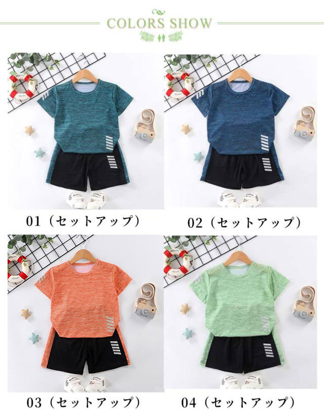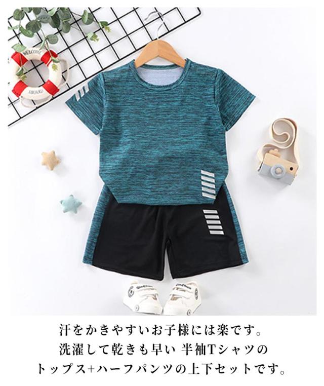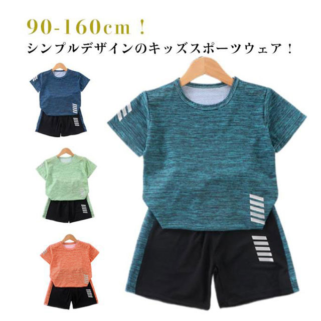 | 90-160cm!シンプルデザインのキッズスポーツウェア! 汗をかきやすいお子様には楽です。洗濯して乾きも早い 半袖Tシャツのトップス+ハーフパンツの上下セットです。 通気性に優れたさらさらとした素材感なので夏でも快適に過ごせます。 サイズ展開豊富なので兄弟姉妹でお揃いもできます。 | |
