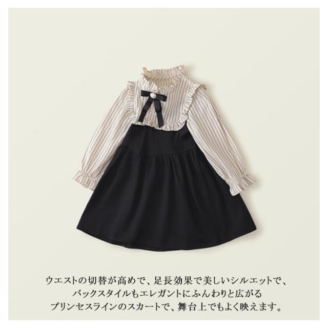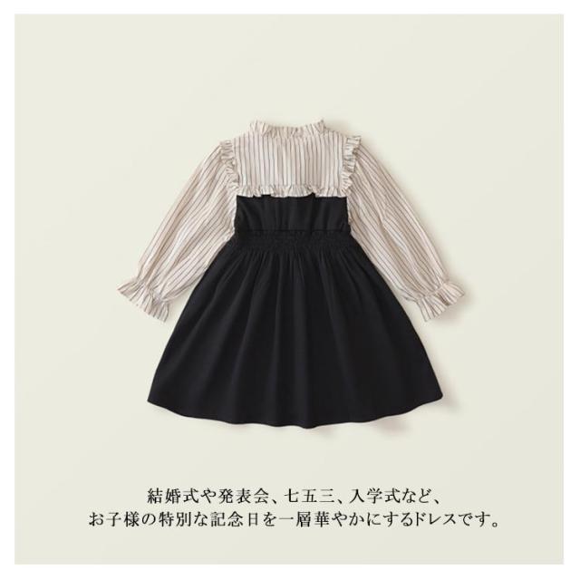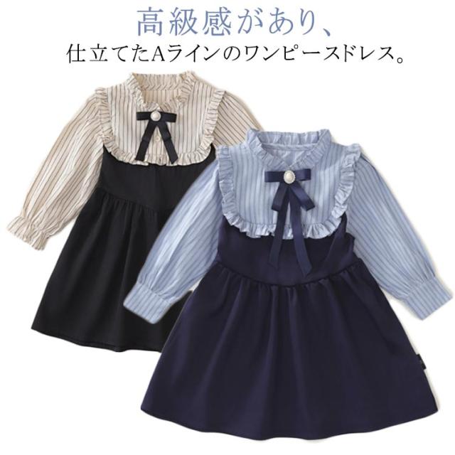 キッズ フォーマルワンピース 女の子 ワンピース 長袖 入園式 フォーマルワンピース プリーツワンピース 子供服 面接 子供 受験 ブラウスワンピース スーツ 発表会 フォーマル 可愛い ストライプ柄 レイヤード 子供 送料無料 通園