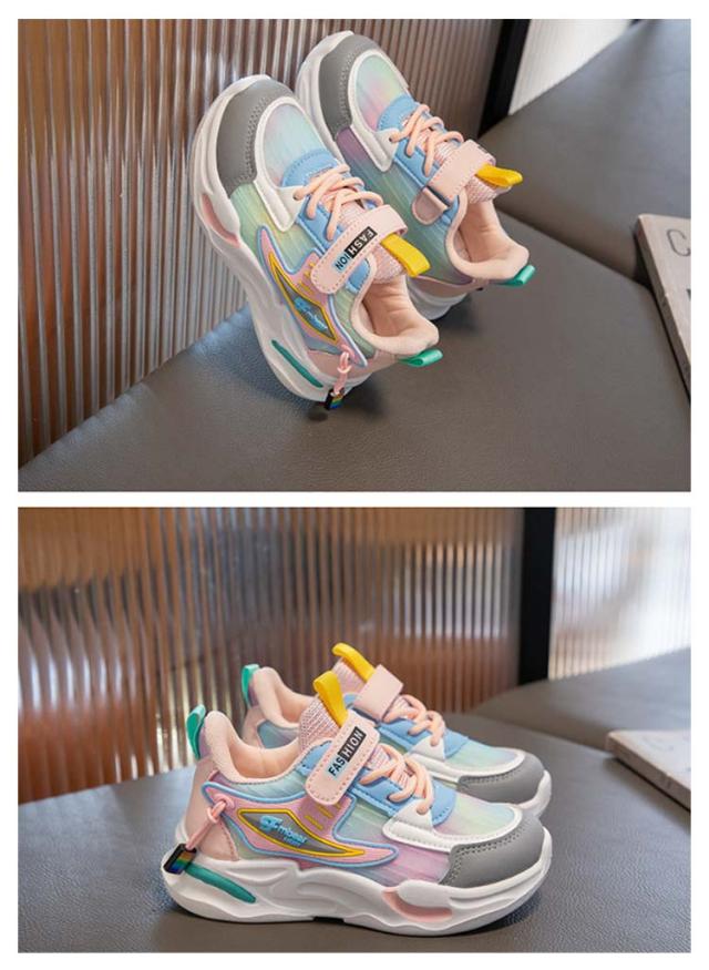 厚底スニーカー ダンススニーカー ランニングシューズ キッズ 女の子 男の子 スポーツ靴 小学生 スニーカー ユニセックス 運動靴 通園 通学 運動用 通気性 男女兼用 合皮 メッシュ キッズ 16.5-22.0cm 旅行 スニーカー マジックテープ 配色