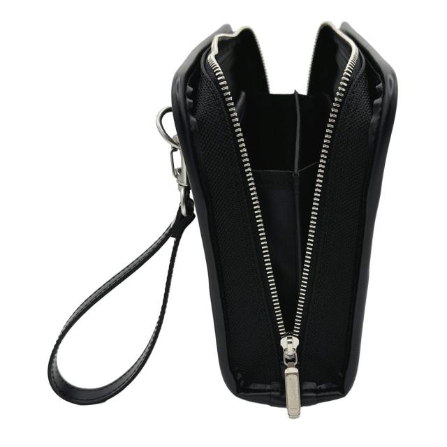 着脱できるハンドストラップ付き。本体メインルームはフルオープン式で、中にはファスナーポケット、ペン差し、オープンポケット、中仕切りが付いています。