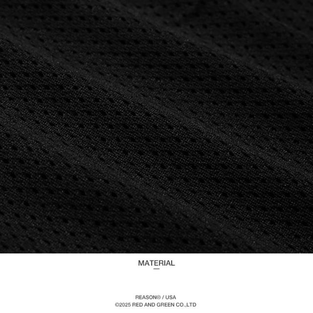 生地は、通気性に優れたメッシュジャージ。汗によるベタツキ感を防ぎサラリとした肌触りを持続する、主にゲームシャツやバスケットパンツなどのスポーツ衣類で使用される速乾・吸水素材を採用。