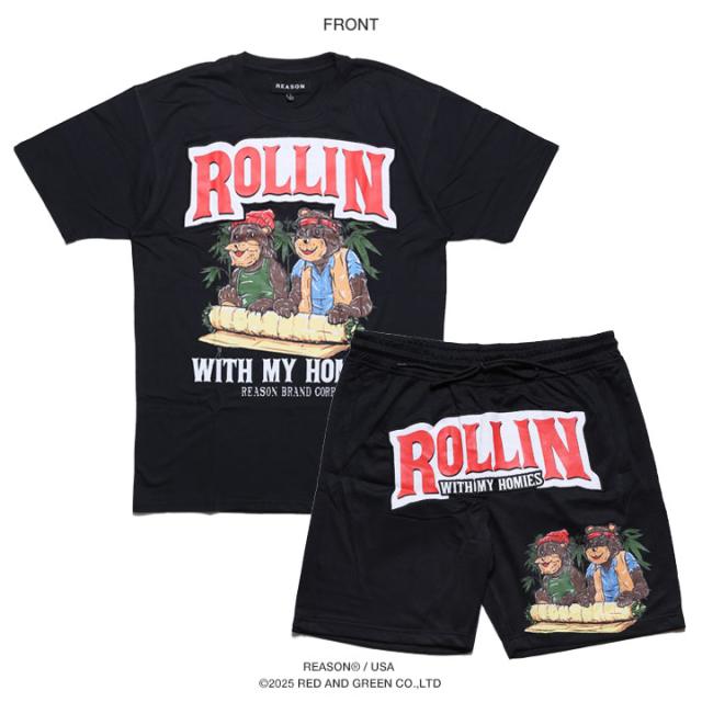 残り僅か【40%OFF】REASON × Cheech & Chong 上下セット 半袖 ブランド Tシャツ ハーフパンツ メンズ 黒 大きいサイズ チーチ&チョン チーチョン 限定 コラボ 公式 リーズン セットアップ ビッグシルエット b系 ヒップホップ ファッション ストリート系 ハイ CC134-137