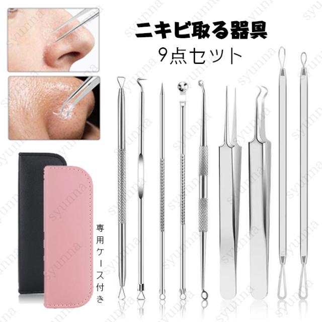 毛穴ケア専用キット 日本国内当日発送 ニキビ取る器具 9点セット 角栓除去 ステンレス製 ピンセット 角質除去 いちご鼻 フェイスケア 黒ニキビ 黒ずみ #br127