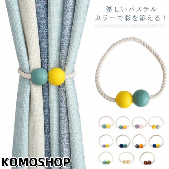カーテンタッセル カーテンアクセサリー マグネット 木製ボール カーテン留め カーテン ホルダー 北欧 パステルカラー 強力 磁石 マグネット式