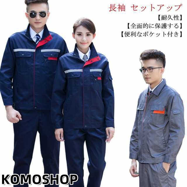 反射材テープ付き 作業服 上下セット セットアップ 通気性良い 男女兼用 作業着 長袖 大きいサイズ 作業服ワークマン ワークウェア レディース 耐磨耗 メンズ ユニフォーム ジャケット 送料無料