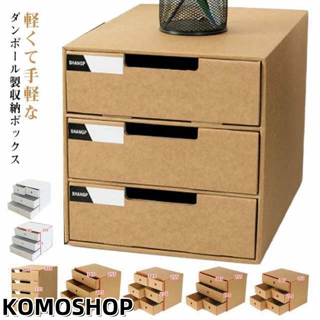 引き出し 3段 収納ボックス カラーボックス 段ボール 4段 ダンボール 仕切り 引き出し収納ケース クラフトボックス 小物収納 縦置き カラーボックス 簡単組み立て 引き出し型