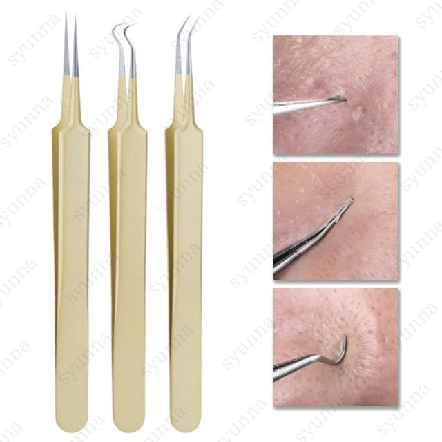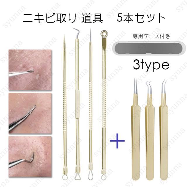 ニキビ取り 道具 日本国内当日発送 5本セット ピンセット 精密 プロ仕様 ニキビ跡 毛穴ケア 角栓 除去 コメドプッシャー ステンレス ケース付き #br130