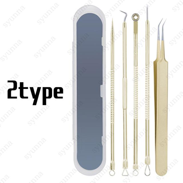 ●毛穴の角栓や、鼻周りの黒ずみ、黒ニキビ、白ニキビのケアに最適なプロ仕様のツール5本セットです。
