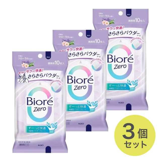 【まとめ買い】ビオレZero さらさらパウダーシート 可憐なフローラルの香り 10枚×3個 汗拭きシート 汗 リフレッシュ 香り 夏 汗 対策 ボディシート ビオレ