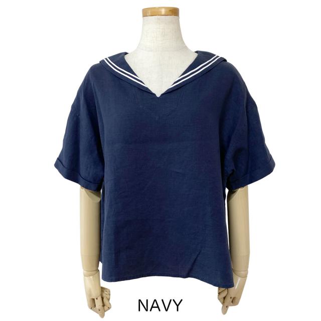 Orcival オーシバル リネンクロス ショートスリーブ セーラー シャツ レディース OR-B0361 YLM