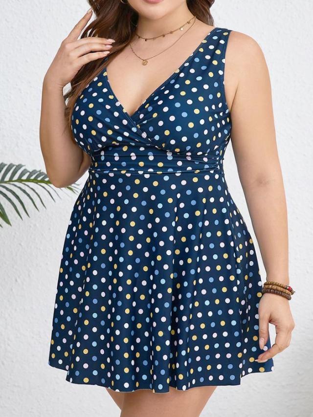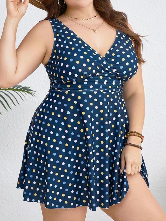 ワンピース水着 レディース 大きいサイズ ネイビー 見せパン かわいい 体型カバー ぽっちゃり 女性L 2L 5L 6L 水玉 ドット 海水浴 温泉 韓国風
