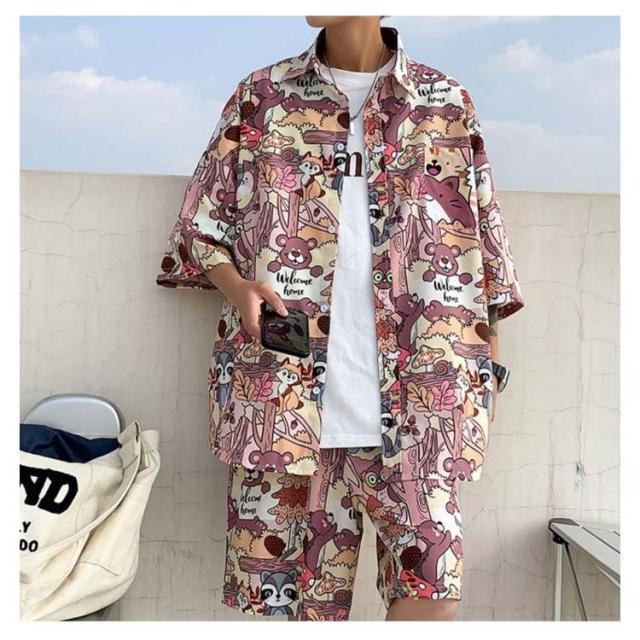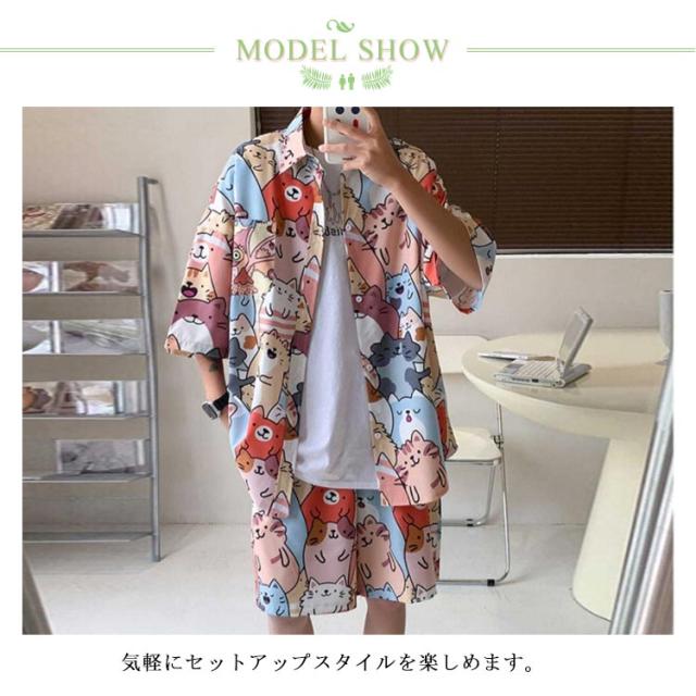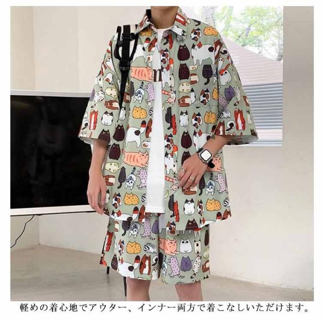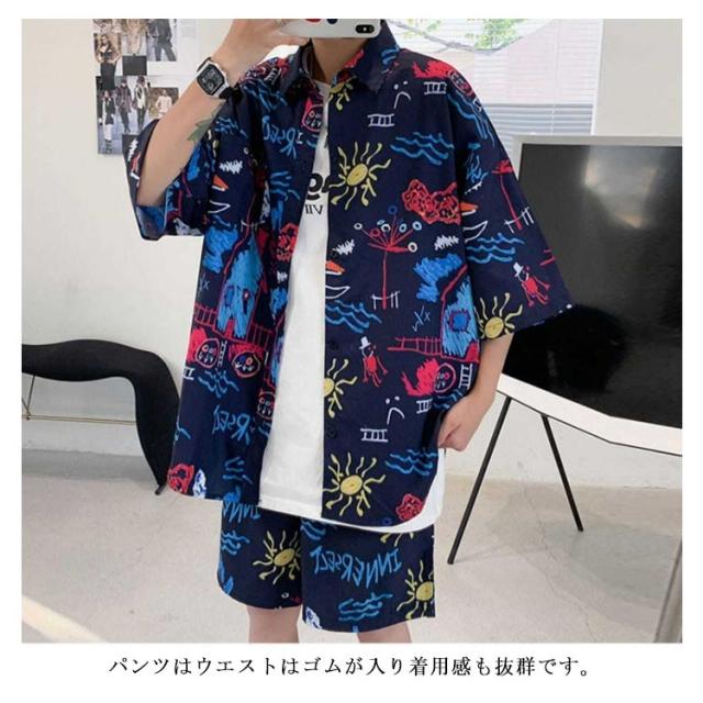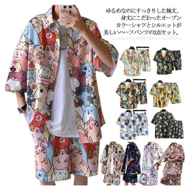 【送料無料】アロハシャツ セットアップ 半袖 ハーフパンツ メンズ 開襟シャツ 夏 ボタニカル柄 ゆったり ハワイアン 総柄 ショートパンツ リゾート 海辺 カジュアル 父の日 プレゼント L 2L 3L 4L 大きいサイズ