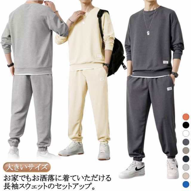 上下 上下セット スウェット トレーナー 長袖パーカー ロングパンツ セット スポーツウエア 部屋着 メンズ 長ズボン 運動着 重ね着風 カジュアル ルームウエア 春服 秋服 春 秋 tシャツ 大きいサイズ ゆったり セットアップ 30代 40代 50代