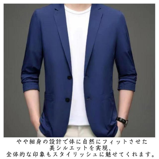 薄い 接触冷感 薄軽 サマージャケット 長袖カーディガン UVカット スーツジャケット きれい目 細身 メンズ スリム 涼しい カジュアル テーラードジャケット オフィス ビジネス