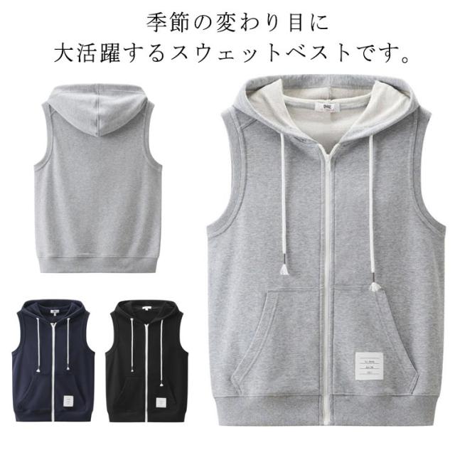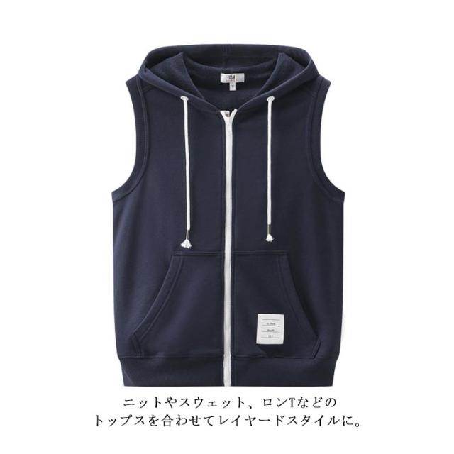 スウェットベスト メンズ パーカーベスト ノースリーブ レイヤード フード付き ジップアップ スウェットベスト 前開きベスト トップス ゆったり お洒落 重ね着 ポケット付き ジレ 大人 カジュアル 大きいサイズ 男性用ベスト