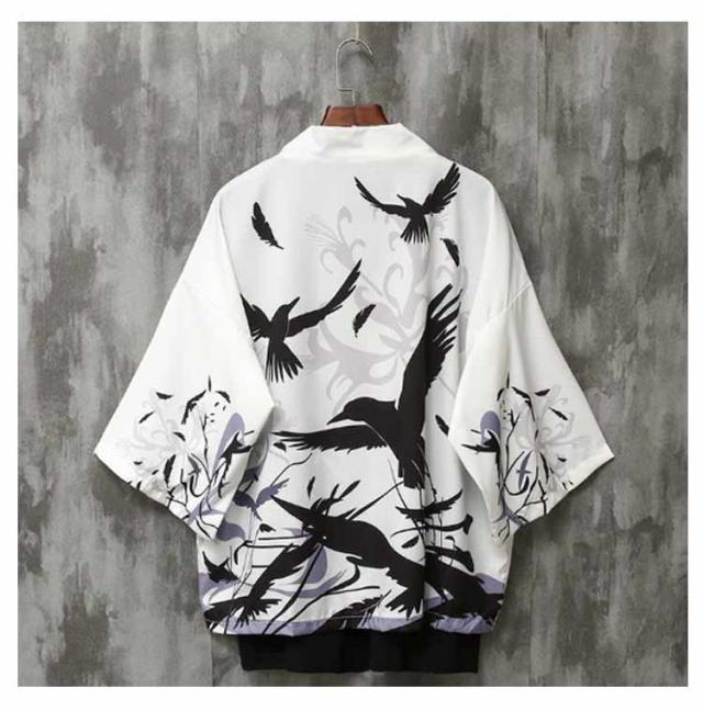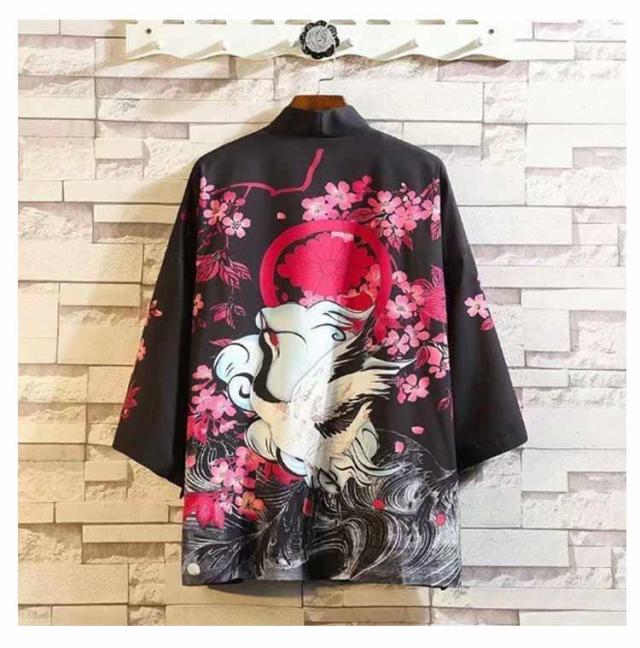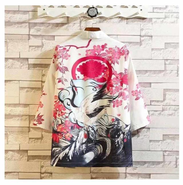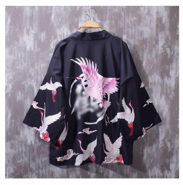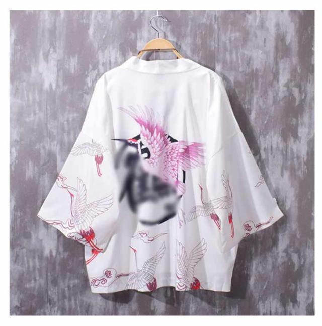 はっぷ 法被 レディース コスチューム サマーカーディガン メンズ 甚平 大人 鶴柄 羽織り ハッピ アウター お祭り 七分袖 半纏 はんてん イベント ダンス コスプレ 和装 ユニセックス 和柄 おしゃれ トップス 部屋着 春夏