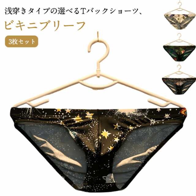 ビキニ ブリーフ Tバック パイソン 男性下着 フラワー 花柄 吸水速乾 セクシー 3枚セット ボタニカル パンツ 鳥柄 メンズインナー ブリーフ ビキニ メンズ ビキニ 立体縫製 3D ローライズ 個性派 オシャレ セクシー