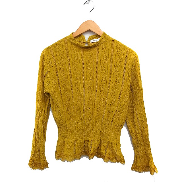 【中古】マウジー MOUSSY レース ブラウス 長袖 ハイネック シャーリング F マスタード 黄 /FT35 レディース