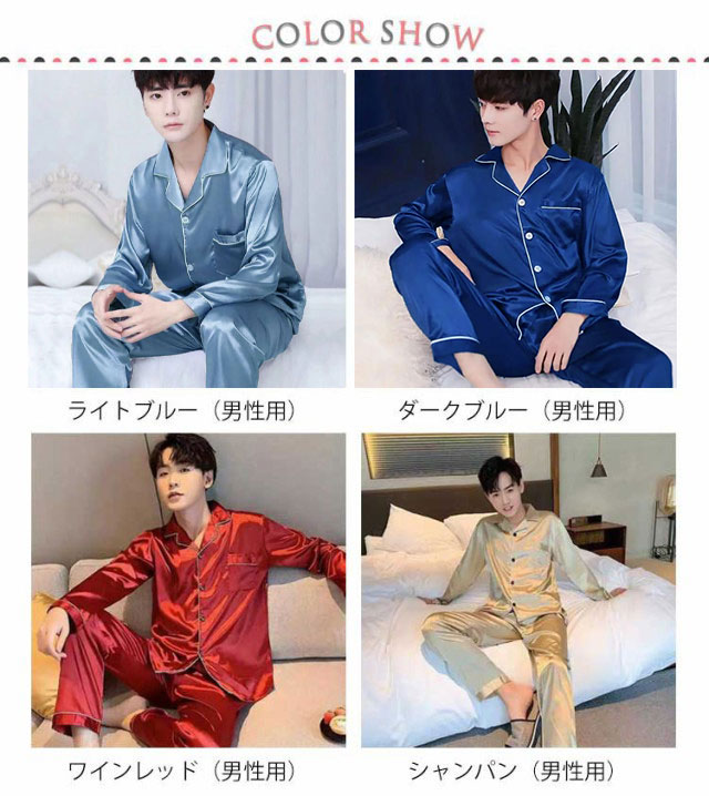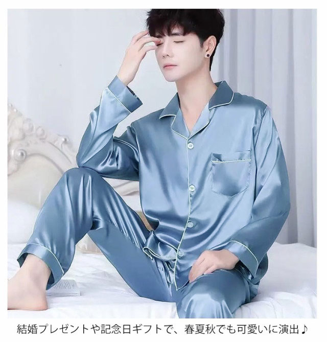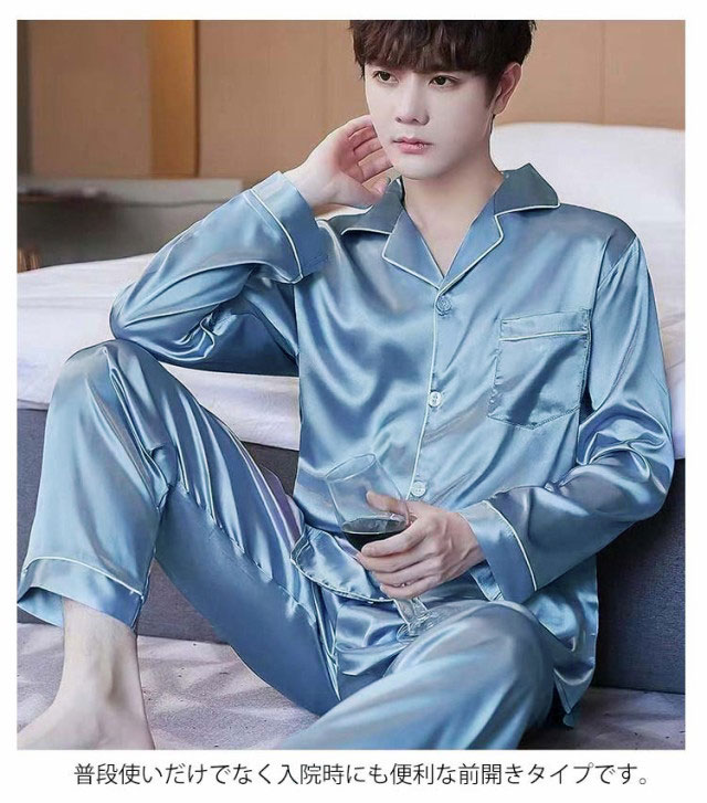 疲れが取れる メンズ レディース 入院着 前開きパジャマ ルームウェア 合成シルク 部屋着 長袖 ナイトウェア 上下セット パジャマ 前開き 快眠 肌に優しい 寝巻き 部屋着 快適 寝間着 男性 女性 ペア お揃い