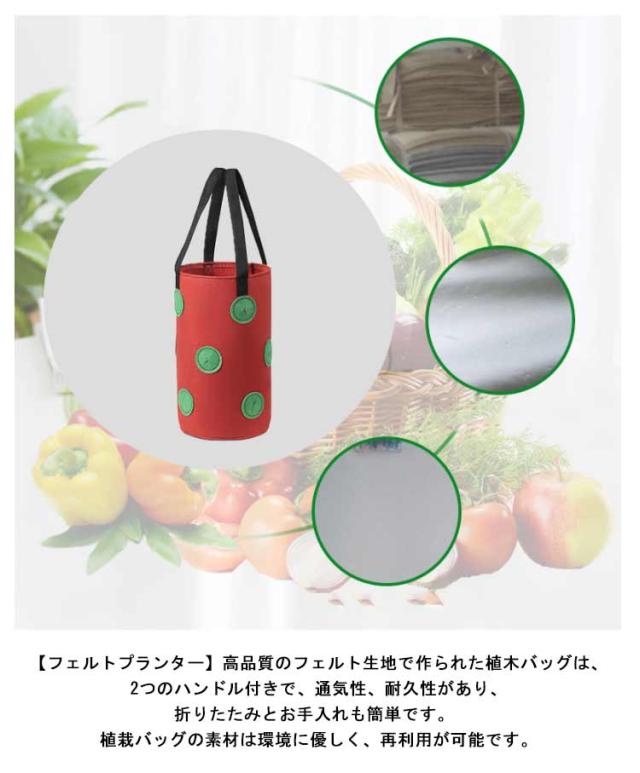| 【簡単な栽培】土と水を簡単に満たすことができます。根系が酸素を得ることができ、過剰な水を排出することができます。これにより、過度の水やりによる根腐れを防ぐことができます。過剰な水やりの問題を避けてください。 【ぶら下げ式スペースを節約】逆さにデザインされたこの植え袋は、スペースを節約で、重力の原理を利用して根に水と養分を最大限に供給します。ぶら下がっている植栽バッグは、トマトや野菜の植え付けが簡単です。従来の植栽に比べ、汚れや虫が少なく、雑草も一切ありません! 【フェルトプランター】高品質のフェルト生地で作られた植木バッグは、2つのハンドル付きで、通気性、耐久性があり、折りたたみとお手入れも簡単です。 植栽バッグの素材は環境に優しく、再利用が可能です。 【幅広い用途】野菜を育てる場所がない場合は、この吊り下げ式の植栽バッグが最適です。ジャガイモ、トマト、ジューシーなミント、花、サトイモ、ニンジン、タマネギ、ピーナッツ、ユリ、バラ、ニンニク、イチゴ、ヒアシンス、スイカ、その他の野菜の栽培に使用できます。あらゆる種類の中庭、学校、庭、バルコニーに最適。 | |