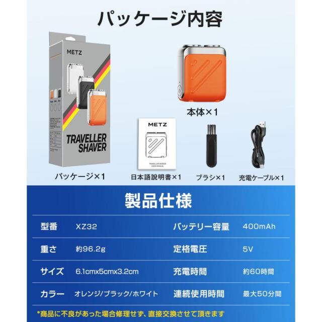 電気 シェーバー メンズシェーバー 電気シェーバー 髭剃り ドイツ製鋼使用 コンパクト 深剃り 回転式 電動髭剃り ミニシェーバー IPX7防水 水洗い可 1年保証
